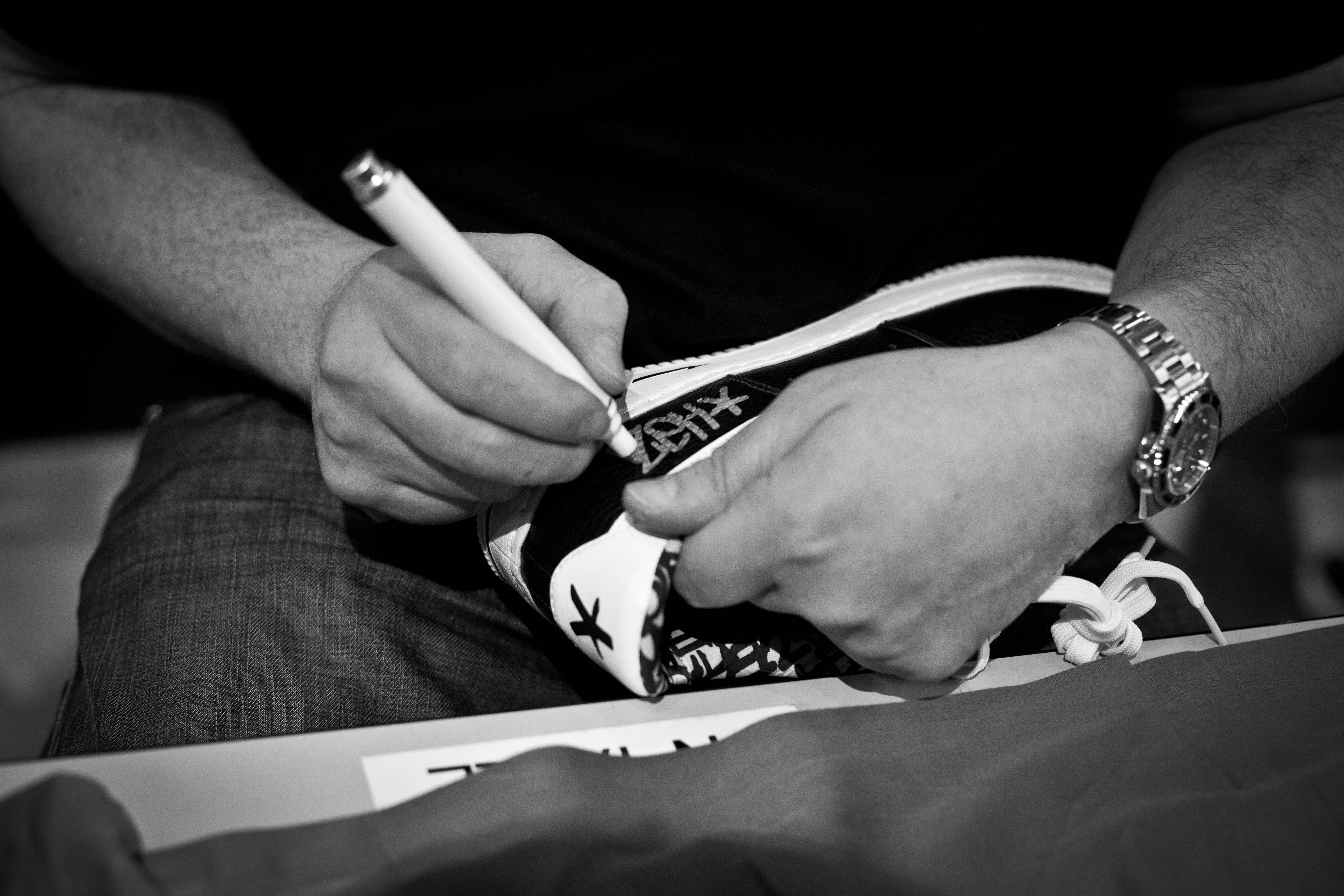 In a joint effort between Nike & legendary NYC graffiti artist Eric Haze, a new Air Force 1 was created. They were released this past Friday exclusively at NikeLab/21 Mercer and Haze himself was there to sign pairs for any fan. It was super frigid here in New York on Friday, but these AF1’s made it all worth the while.